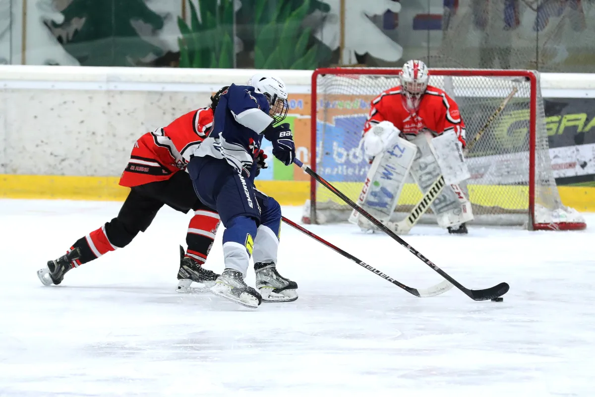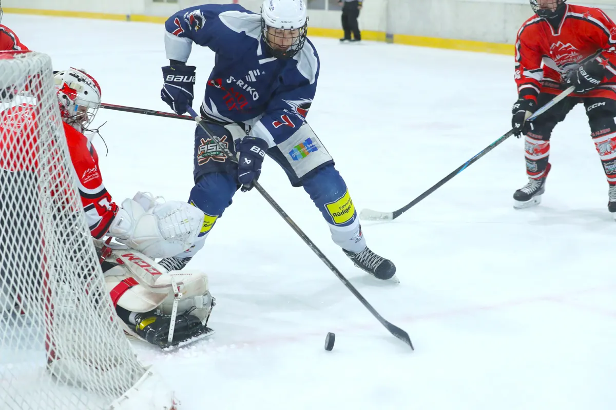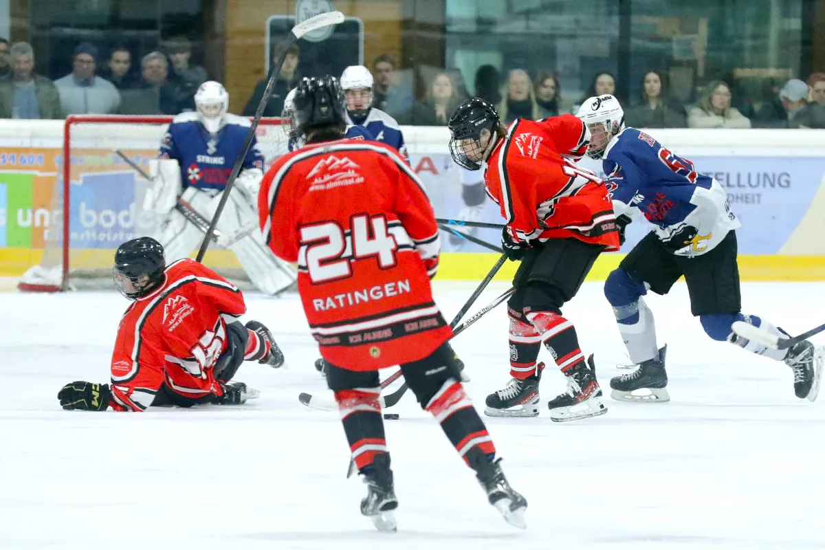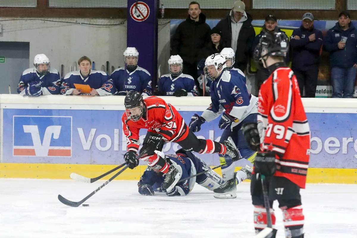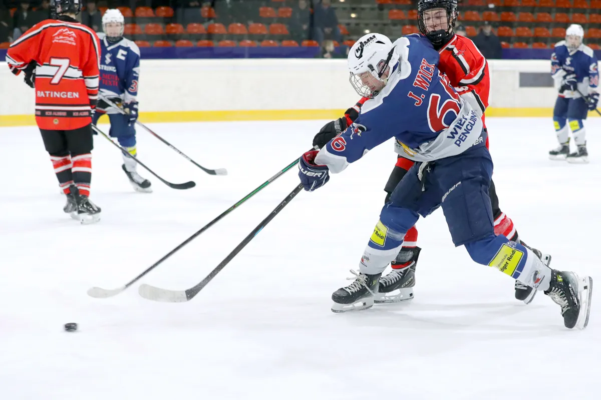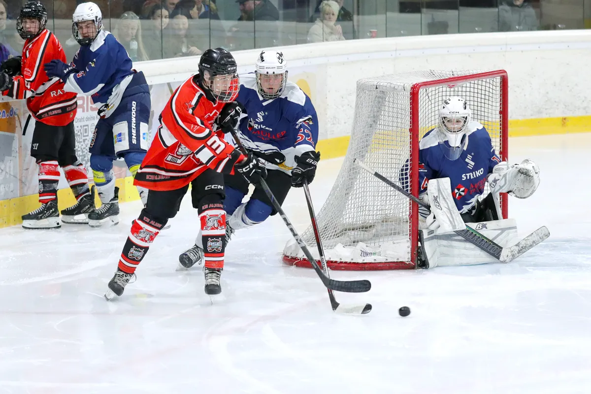 Im letzten Saisonspiel war alles angerichtet, die Penguins hatten nach einer 8 Spiele Siegesserie den Gewinn der Meisterschaft wieder in der eigenen Hand, ein Sieg gegen den Tabellen 5. aus Ratingen musste her. Kein leichter Gegner, hatten die Ratinger doch ihrerseits dem zwischenzeitlichen Tabellenführer aus Herford wichtige Punkte im Kampf um den Titel abgenommen. Die Penguins agierten sofort gewohnt druckvoll im Offensivspiel, mit unbedingter Entschlossenheit den Titel zu holen, von Nervosität keine Spur. Die Defensive war wenig gefordert und agierte souverän bei Ratinger angriffen. Innerhalb von 12 Spielminuten wurde eine 6:0 Führung zum 1. Drittelende herausgespielt. Leonard Kurz traf zweimal zu Beginn, Ben Kautschke mit einem Hattrick und schließlich Mats Göbel. Anstatt das Tempo zu drosseln, wurde auch im zweiten Drittel weiter kombiniert, wenn auch eher „für die Galerie“, um die mehr als 200 (!) Zuschauer zu unterhalten. Mats Göbel und Amand Herczeg stellten auf 8:1 nach dem zweiten Drittel. Der Titel war den Penguins nun nicht mehr zu nehmen. Im letzten Drittel verwalteten die Penguins nur noch das Ergebnis. Felix Flender trug sich noch in die Torschützenliste ein zum 9:3 Endstand für Wiehl. Dank geht auch an die Aliens für die faire Partie und den Gratulationen nach dem Abpfiff, vorbildliches Verhalten der Ratinger. Mit dem Schlusspfiff stürmten die Wiehler Spieler das Eis, eine Saison mit vielen Höhen und kleineren Tiefen fand ihren Abschluss mit dem „vorläufigen“ Meisterpokal (der die Meisterfeier später nicht ganz unbeschadet überstehen sollte). Wir warten auf den „richtigen“ Pokal vom Eissportverband NRW. Zwei Niederlagen stehen am Ende 11 Siege gegenüber in der Hauptrunde. In der Vorrunde gab es in 6 Spielen nur Siege. Somit endet die Saison 25/26 mit der MEISTERSCHAFT DER U20 WIEHL PENGUINS. Die Penguins stellen in dieser Saison sowohl den punktbesten Spieler der Liga mit Ben Kautschke (68 Punkte aus 20 Spielen), wie auch die beiden punktbesten Verteidiger, Mats Göbel und Amand Herczeg. Mit Leo Kurz (Platz 3) und Vincent Nosber (Platz 10) sind noch zwei weitere Wiehler bei den Stürmern unter den TOP10 der Scorer-Wertung. Bei den Goalies belegten mit ihren starken Leistungen Annalena Hummel Platz 3 und Lars Meurer Platz 6.